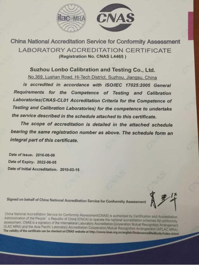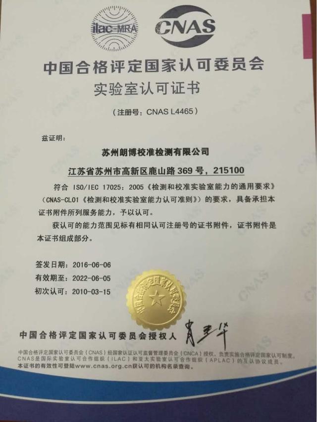 我司CNAS資質(zhì)公布